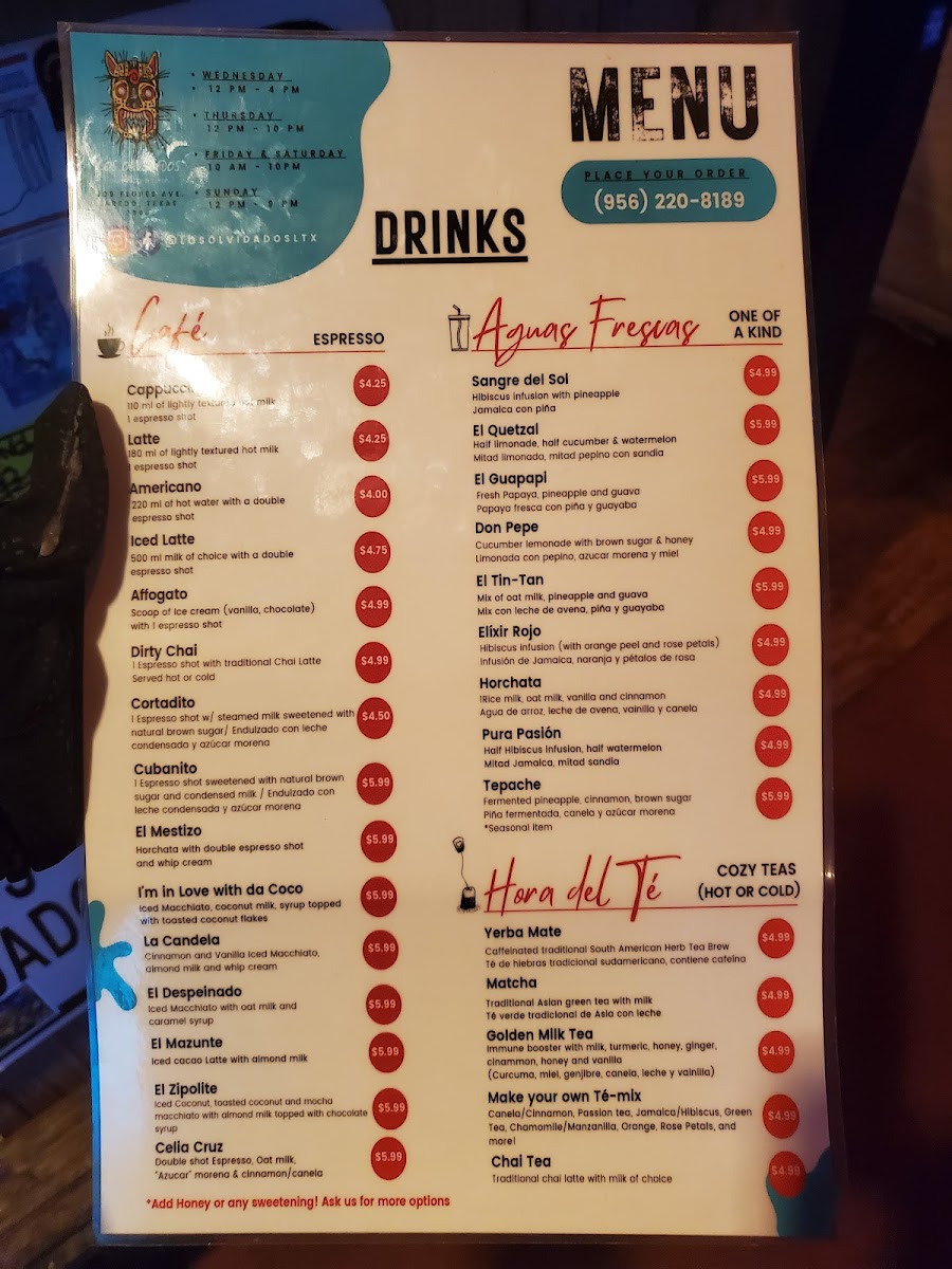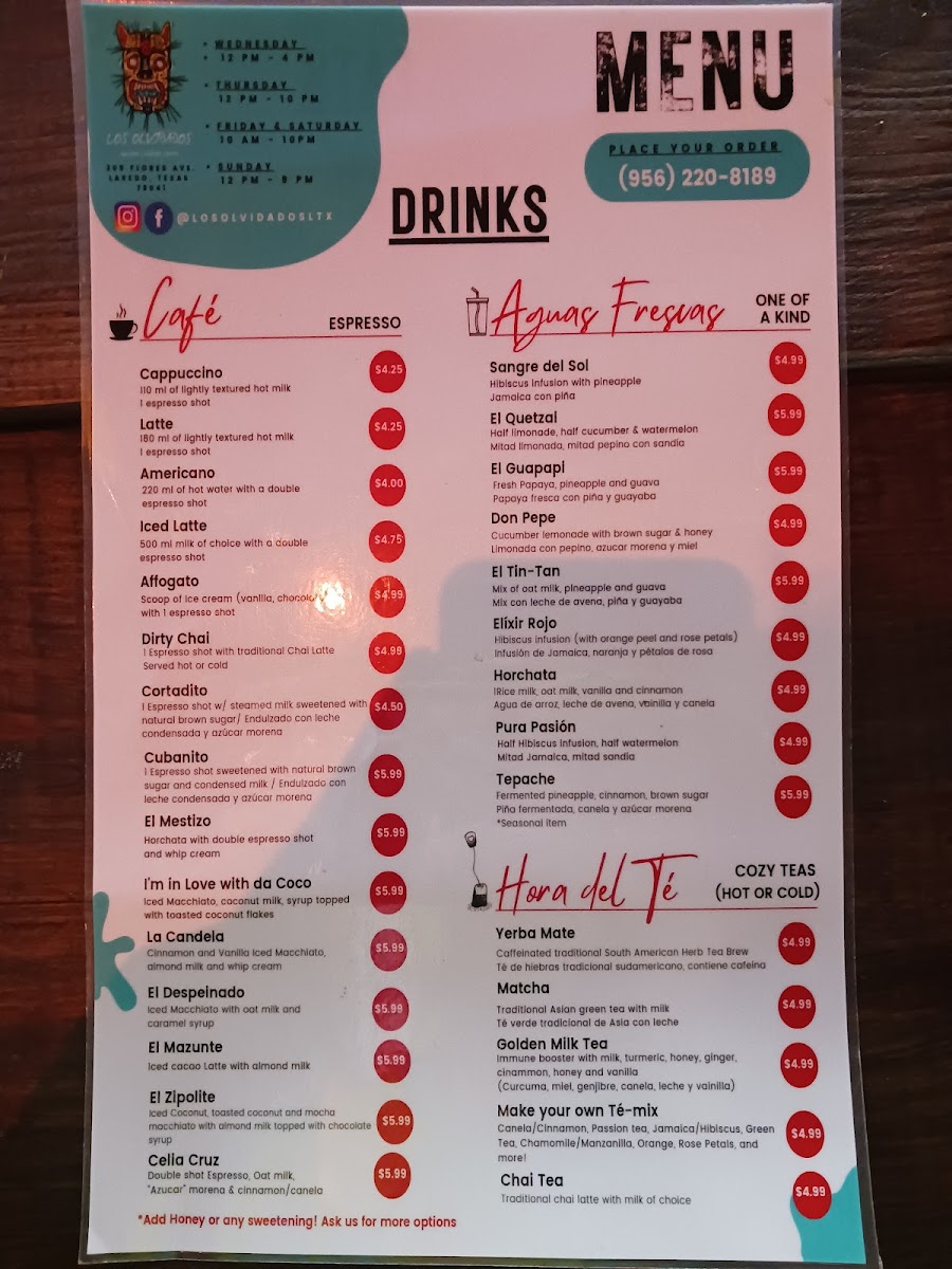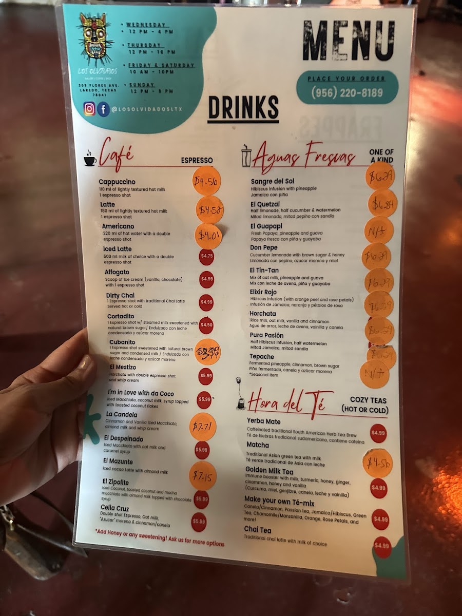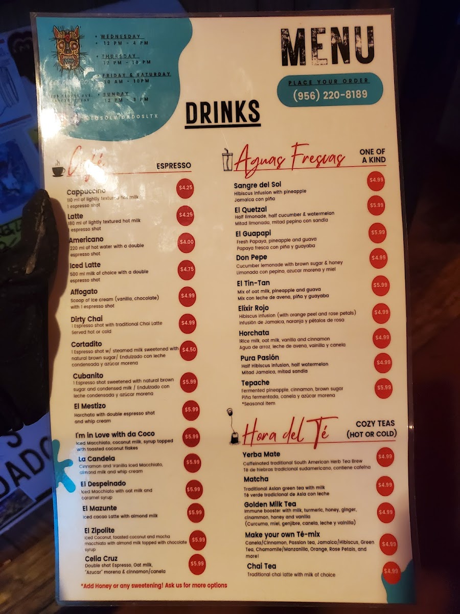 Los Olvidados Coffee Shoppe & Gallery Menu
